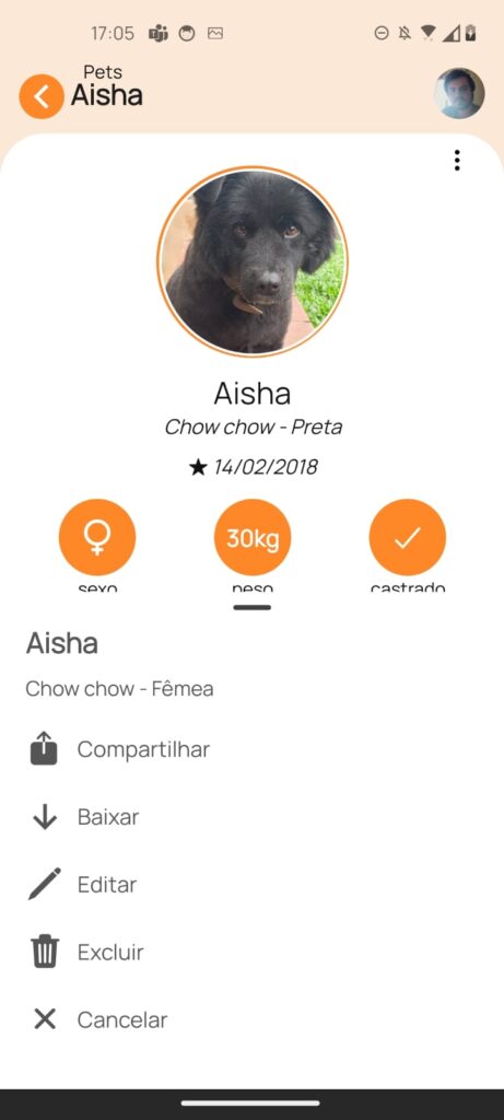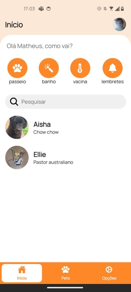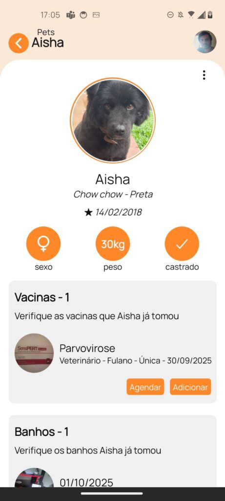 Neste momento, o foco do aplicativo é para cães e gatos, mas nada impede de adicionar novos pets.